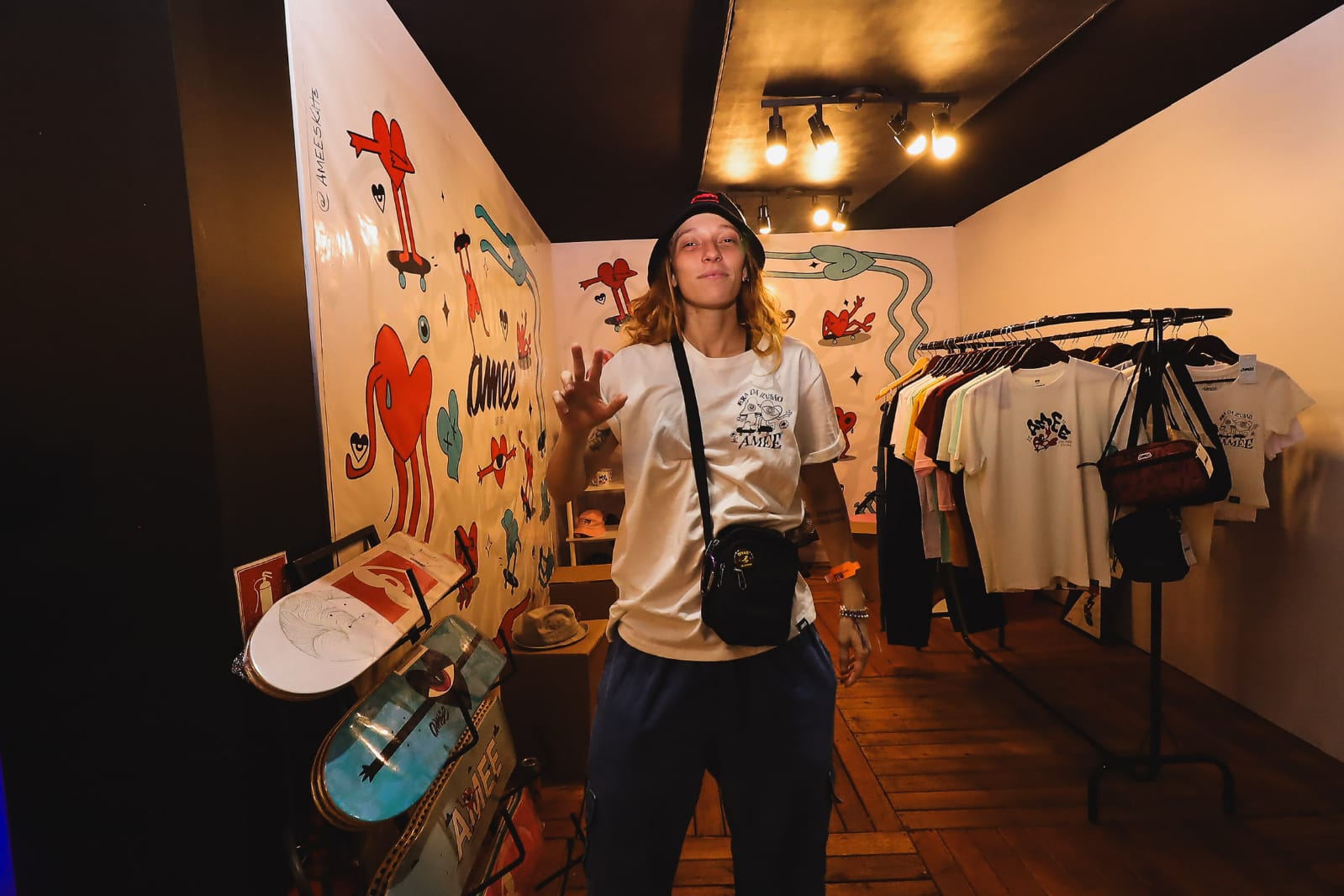 Meu nome é Marcos Van, meu apelido é Esquilo, sou nascido aqui em Barbacena – MG, sou fotógrafo e videomaker, sou skatista há 15 anos e agora tive essa oportunidade de fazer o collab com a Amee.