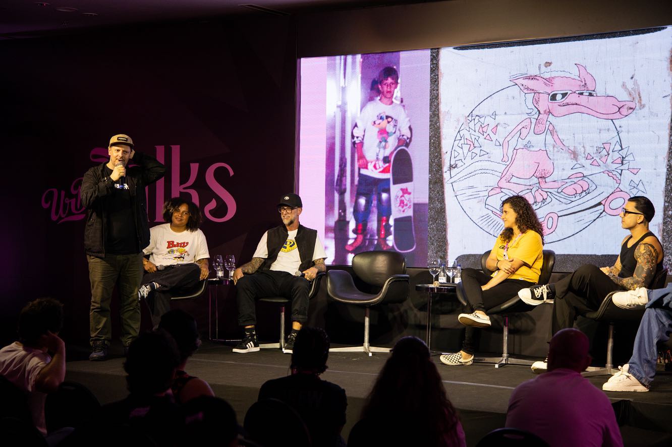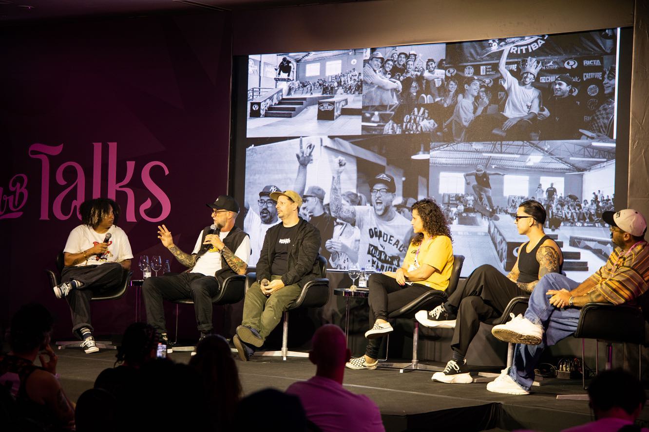 Mais tarde teve um bate papo com outras pessoas que inspiram muito o mercado do skate: Ty Evans, Paul Rodrigues ( marca Primitive) , Pedro Barros e o Narciso da OUS.